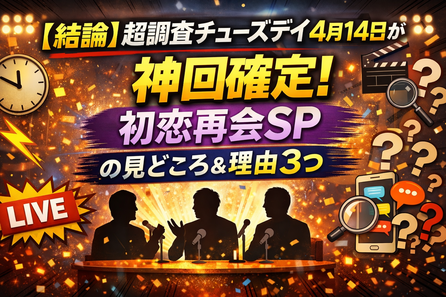 2026年4月14日放送の『超調査チューズデイ~気になる答え今夜出します~』は、結論から言うとシリーズ屈指の神回になる可能性が高い回です。