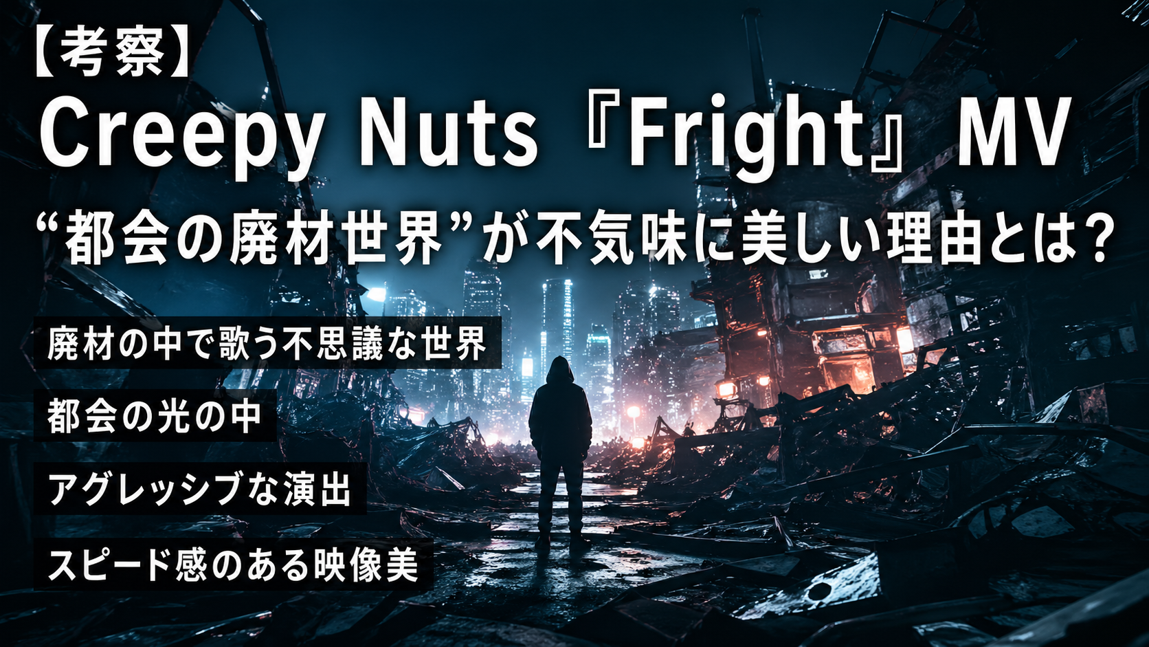 「廃材×都会の光」「アグレッシブな疾走感」「意味深な不穏演出」