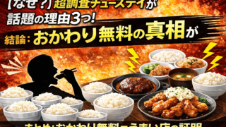 その他 【なぜ?】超調査チューズデイが話題の理由3つ!おかわり無料の真相がヤバい 超調査チューズデイで話題のおかわり無料の真相を徹底解説。濃い味付けの理由や人気定食屋、なぜご飯が進むのかをわかりやすくまとめました。 2026.04.07 その他エンタメ